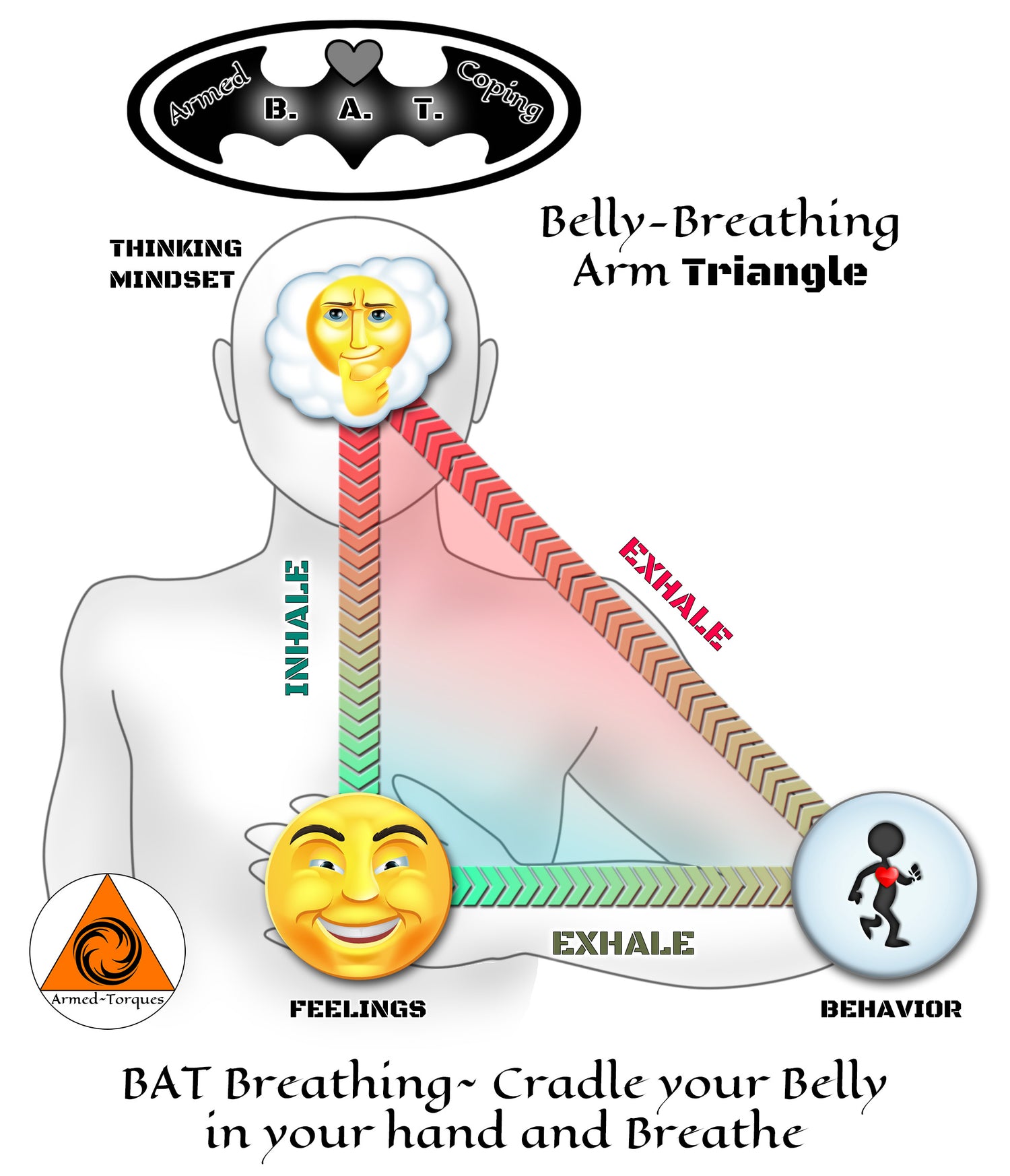 This video is a part of our Torques Therapy program that introduces the B.A.T. using music as memorable way to teach Belly Breathing. We use the CBT Triangle and arm movement to move out of stinking thinking into our bodies to feel ourselves breathing deeply. Use your BAT so you don't go "bat poop crazy"